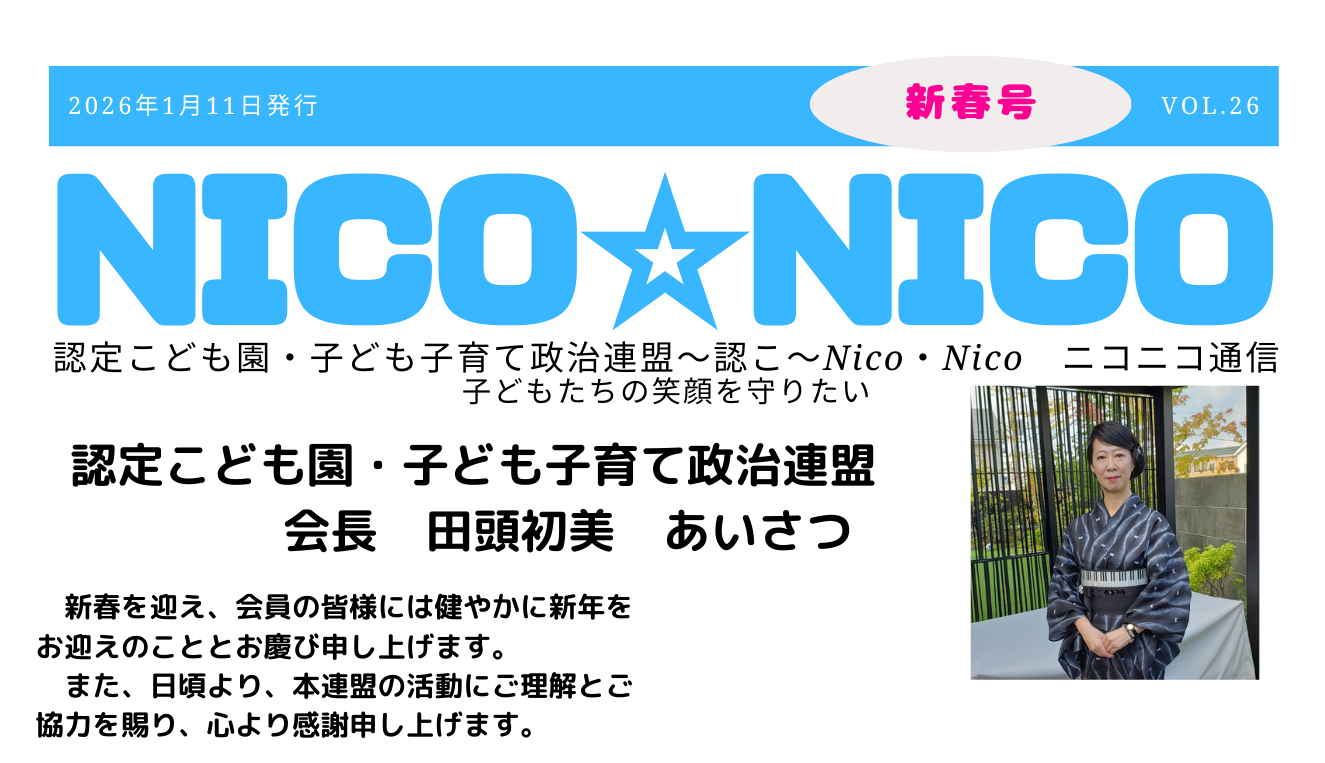 時代の変革とともに、今こそ政治マターで我々を取り巻く諸課題に向かっていかなければなりません。少子化対策と乳幼児教育・保育の充実を進めるために、是非ご入会頂き、ともに現場の声、子育て家庭の声を政策課題として国に挙げて参りましょう。